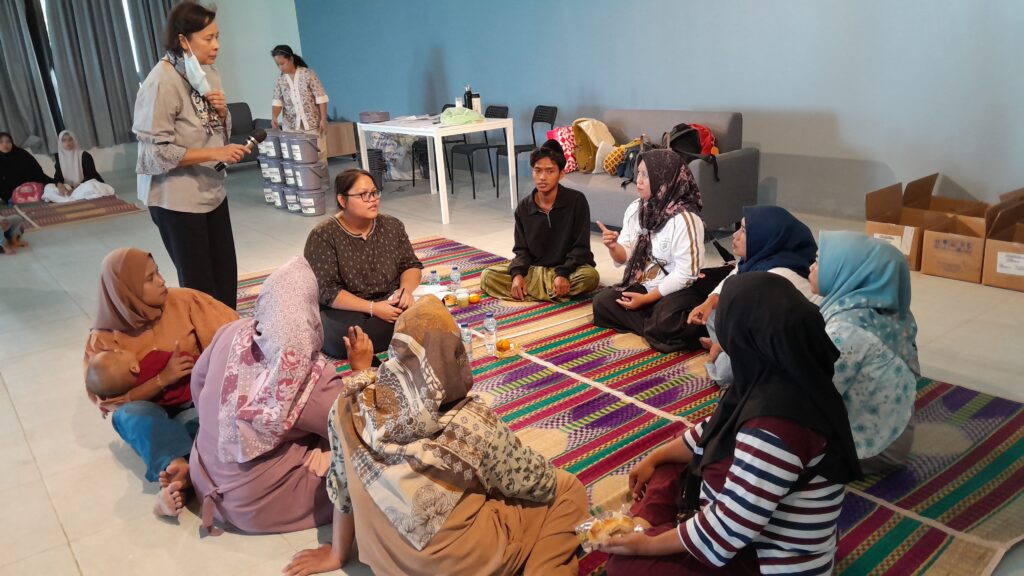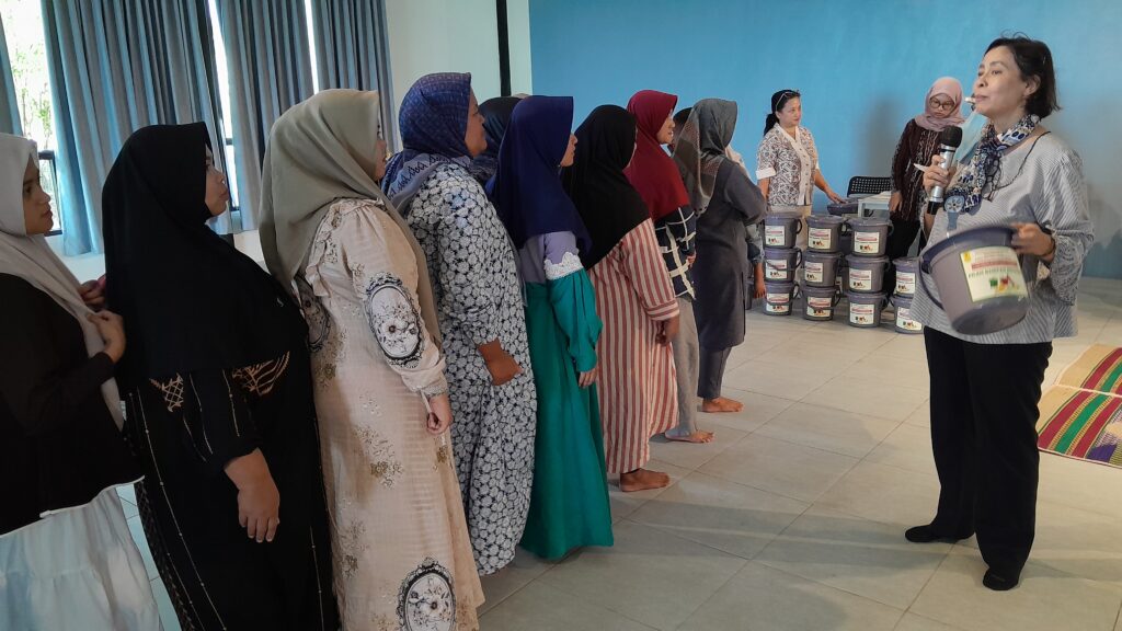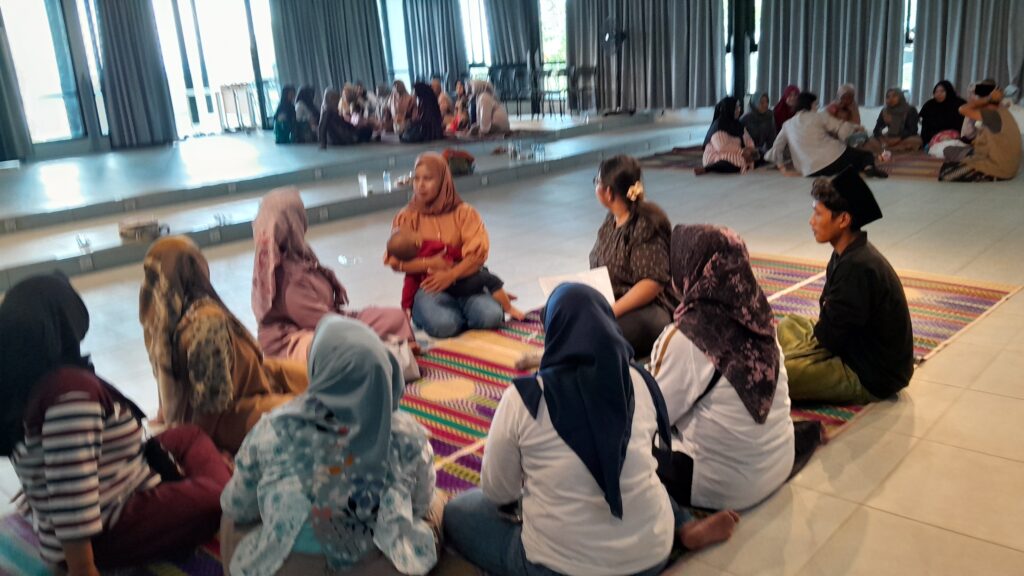 Sebelum kegiatan utama dimulai, Bu Nining penggagas Komunitas Pilah Sampah Kampung Ilmu menyambut para ibu yang sudah berkumpul. Sebagian besar peserta merupakan anggota lama, sementara beberapa lainnya baru pertama kali bergabung.
