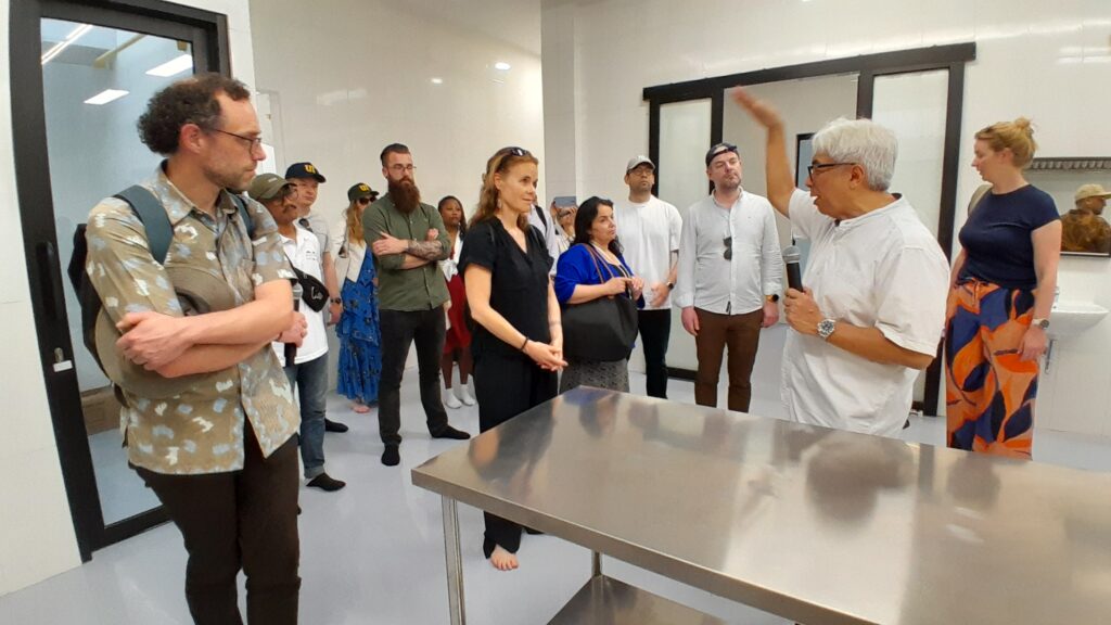 Rombongan EMBA kemudian mengunjungi program Tobong, sebuah inovasi teknologi yang memanfaatkan limbah sebagai bahan bakar untuk mengeringkan hasil panen. Teknologi ini ramah lingkungan, hemat biaya, dan mudah direplikasi. Ahmad Juang menjelaskan keunggulan sistem ini, yang menarik perhatian Rajeev Gade yang memiliki latar belakang engineering (Magister Sains Teknologi). Baginya, ini adalah contoh nyata inovasi tepat guna yang relevan secara global.