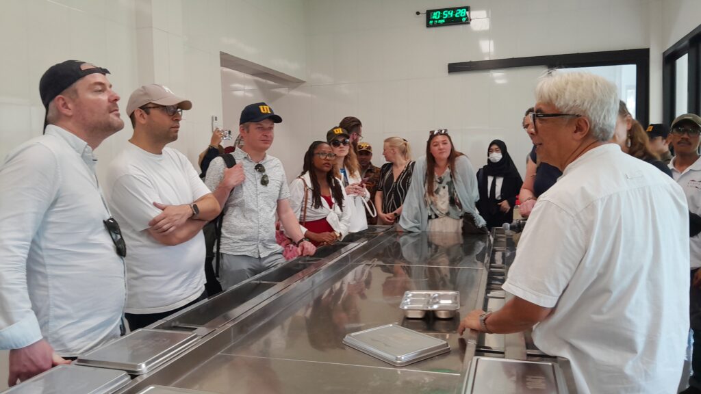 Dari sekolah, rombongan melanjutkan perjalanan dengan berjalan kaki menuju Dapur MBG Kampung Ilmu. Mereka tidak hanya melihat sebuah dapur, tetapi sebuah sistem yang bekerja. Dapur MBG bukan sekadar tempat memasak. Di sini, penyediaan makanan bergizi berjalan seiring dengan upaya menggerakkan pemberdayaan masyarakat sekitar.