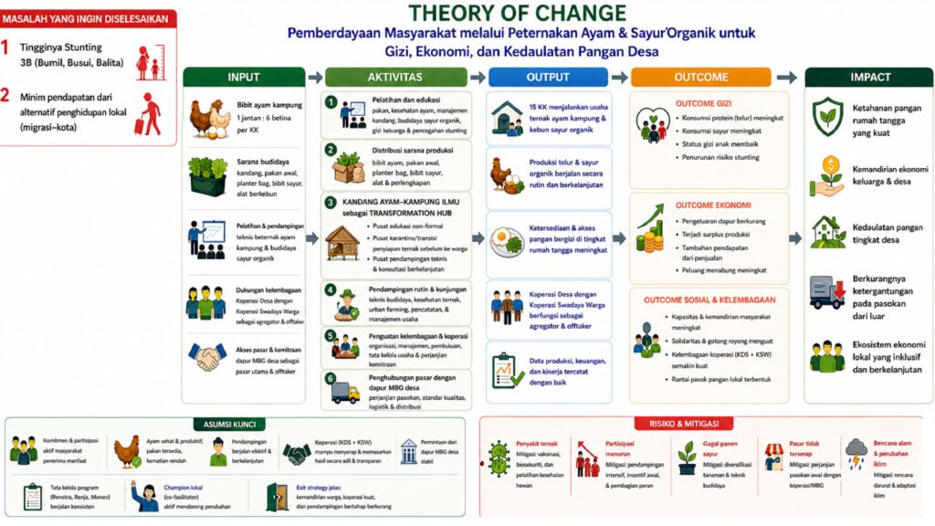 Salah satu fokus utama adalah bagaimana pemberdayaan masyarakat melalui peternakan ayam dan budidaya sayur organik dapat meningkatkan gizi, memperkuat ekonomi keluarga, dan mendorong kedaulatan pangan.